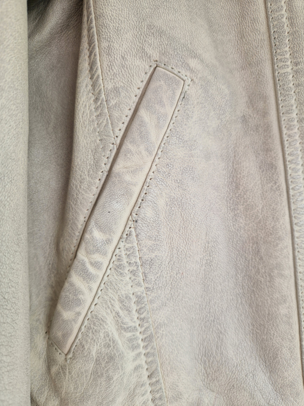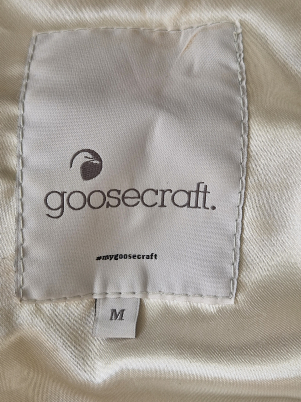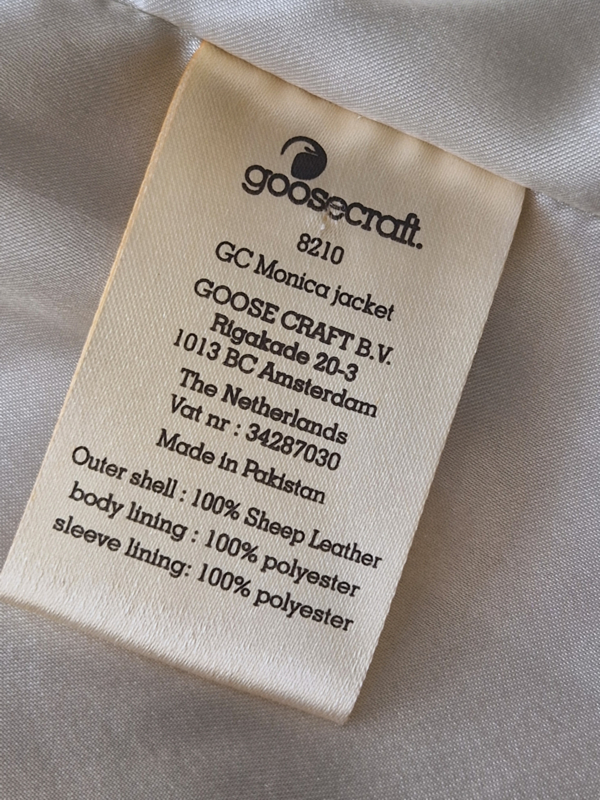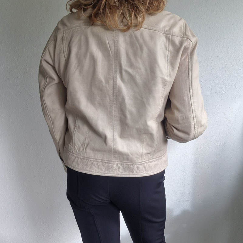 -Mooi beige leren jasje met een diagonale drukknoopsluiting van Goosecraft in maat M. Kan prima gedragen worden met maat 38 en 40.
