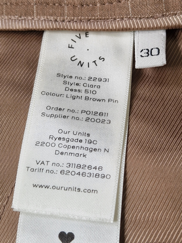 Five Units krijtstreep pantalon Clara. Maat 30,Lichtbruin.