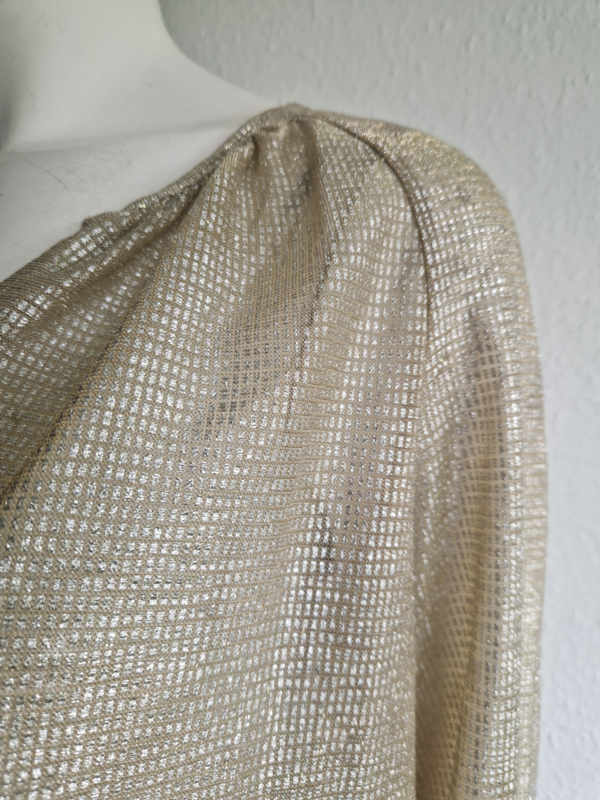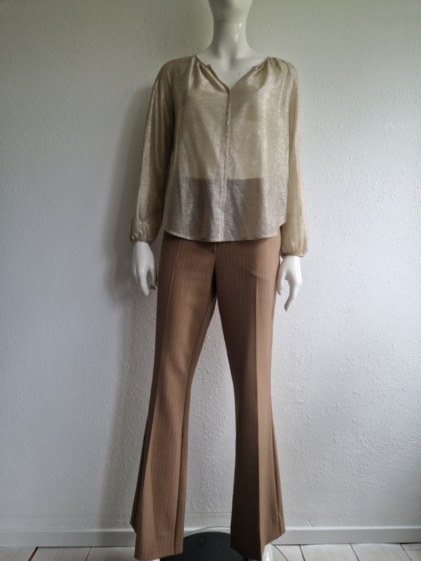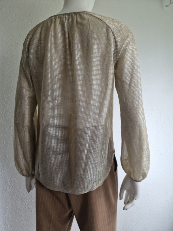 -Feestelijke goudkleurige top met V-hals van See U Soon in maat M/L. De top valt ruim bij maat 38.