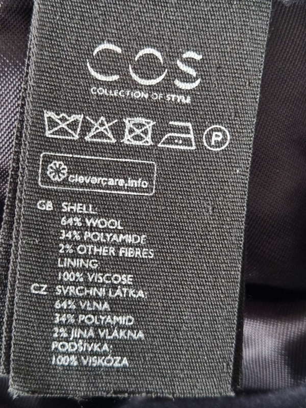 Materiaal: 64% wol, 34% polyamide, 2% andere vezels. Voering: 100% viscose.