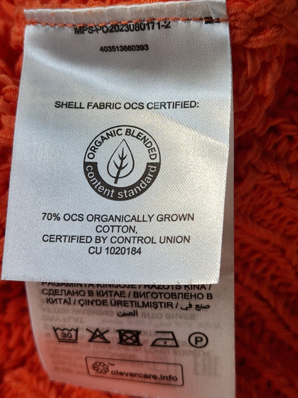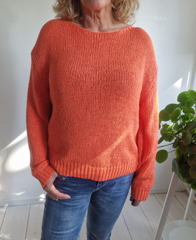-Leuke losgebreide oranje trui van Marc O'Polo in maat L. De trui valt als een maat 40, maar kan ook prima met maat 38 gedragen worden.
