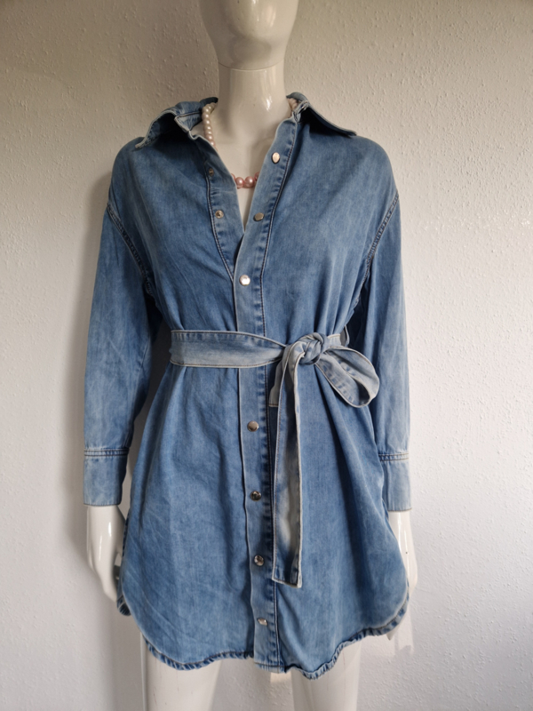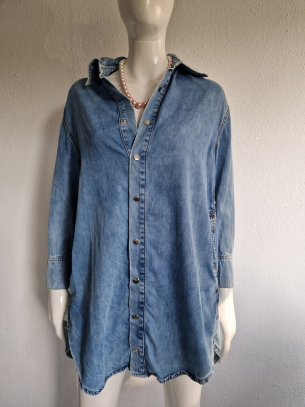 -Stoere denim blouse met knoopceintuur van Liu Jo in maat S. De blouse valt als een maat 36/38.