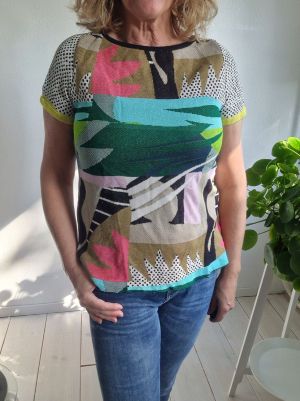 -Kleurrijke trui van Aldomartins in maat 40. Kan ook prima gedragen worden met maat 38.