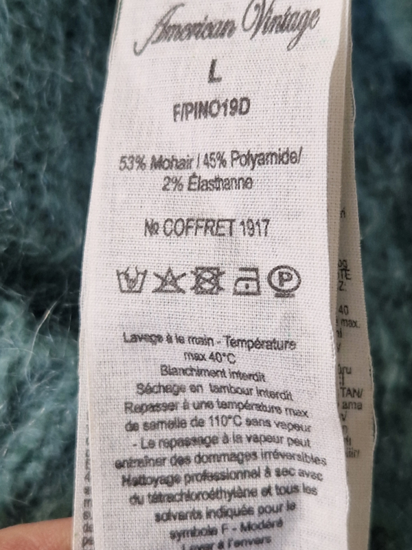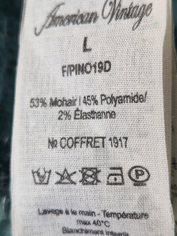 Materiaal: 53% mohair, 45% polyamide, 2% elastaan.