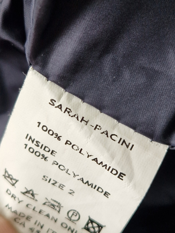 -Heerlijk lichtgewicht jack van Sarah Pacini in maat 2. Het jasje valt als een maat 38. Ik heb zelf maat 40. Bij mij valt het jasje net te strak.