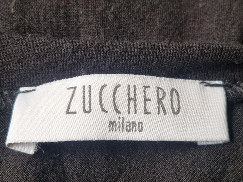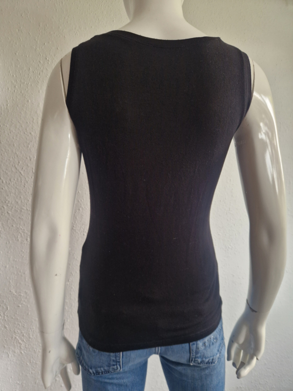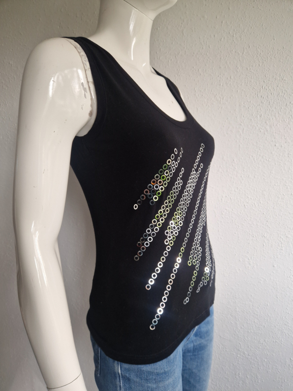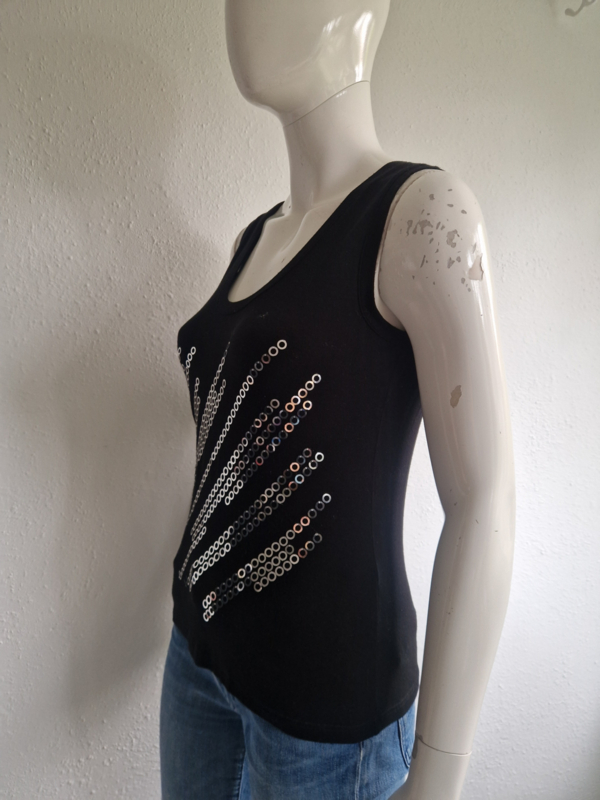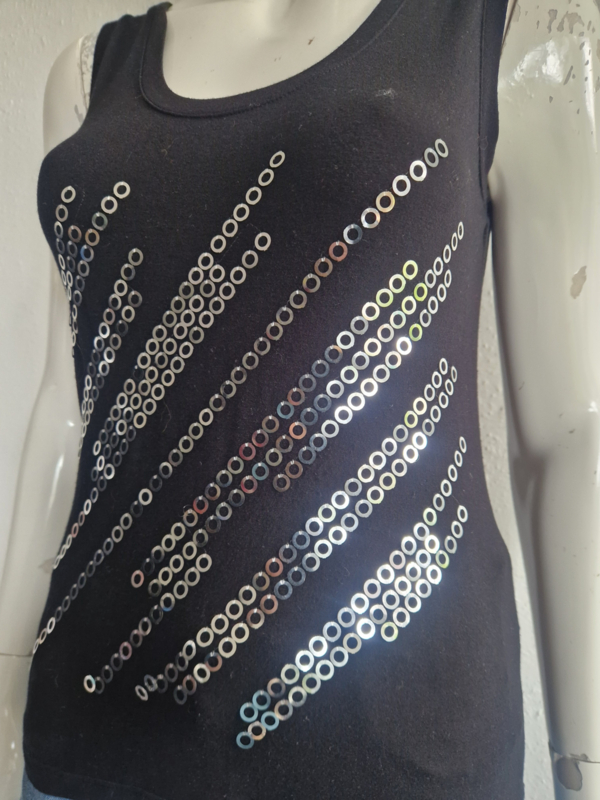 Zucchero top. Maat 38, Zwart/zilveren ringetjes.