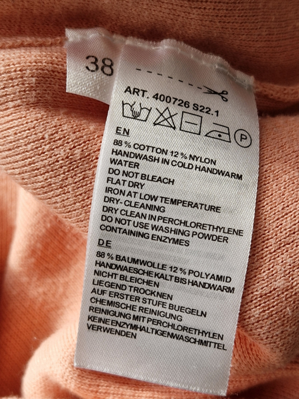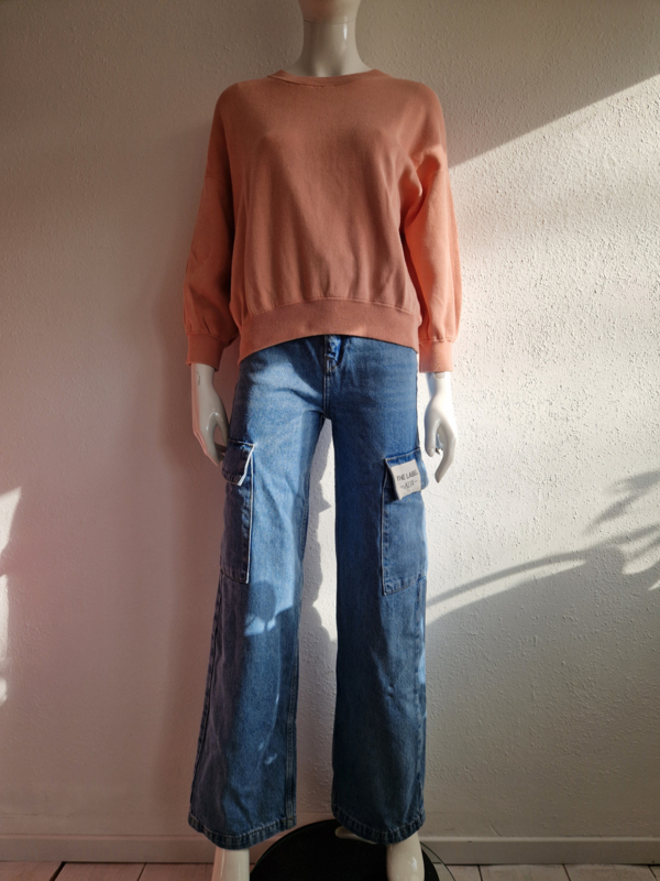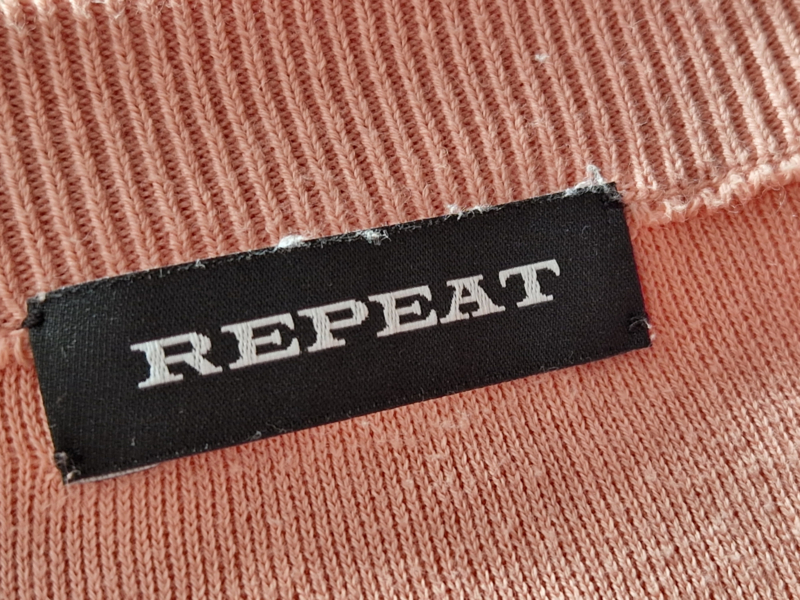 -Fijne zalmkleurige sweater met driekwart mouwen van Repeat in maat 38.