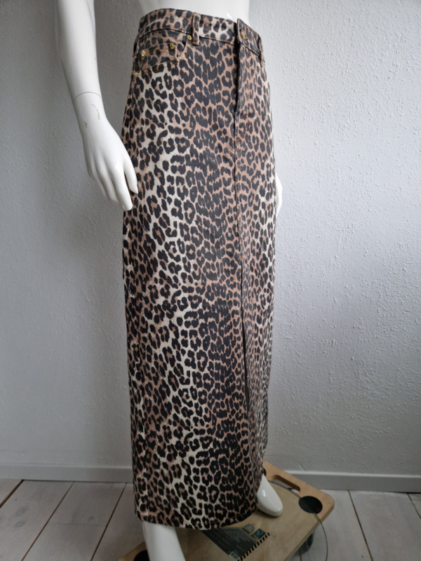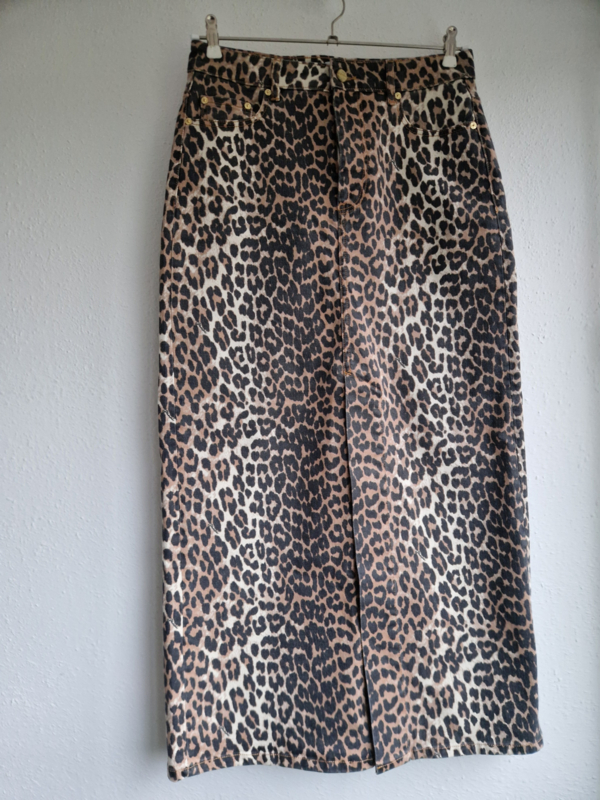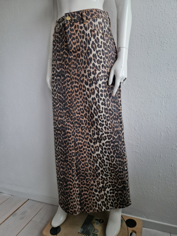 Ganni denim maxi rok. Maat 40. Luipaardprint