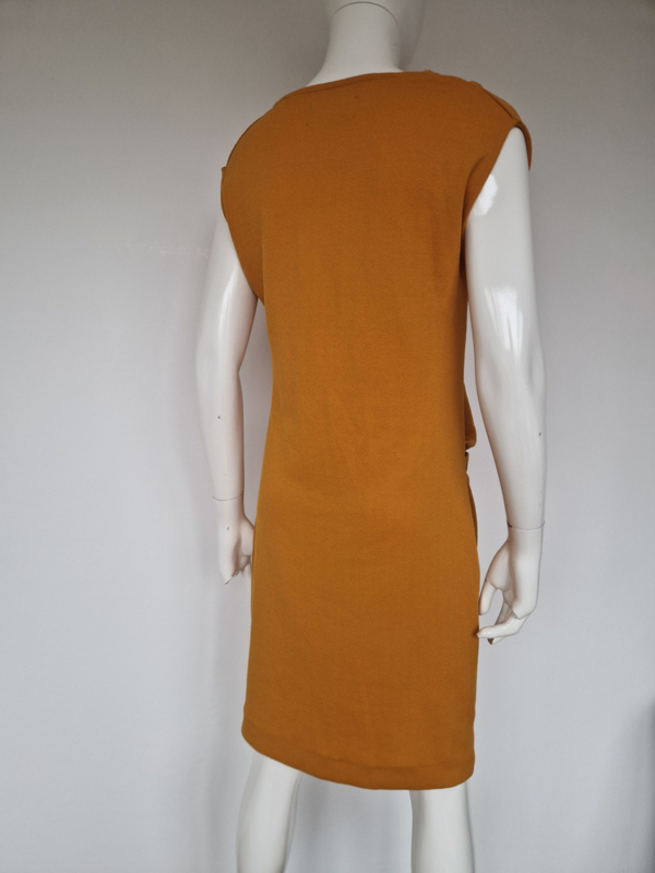-Leuk helder oranje jurkje met lichte watervalhals van Kiomi in maat 40.