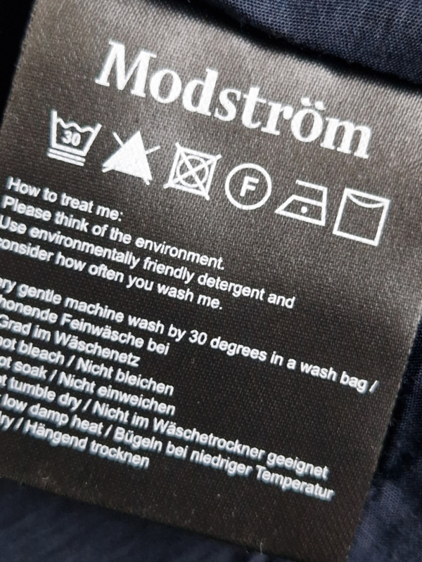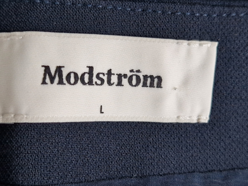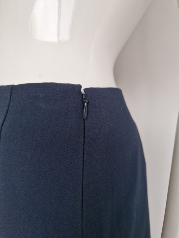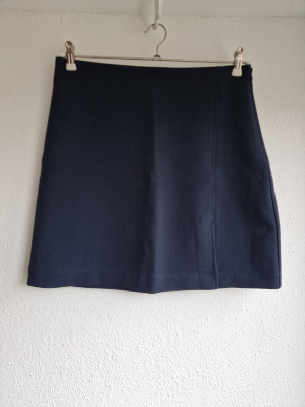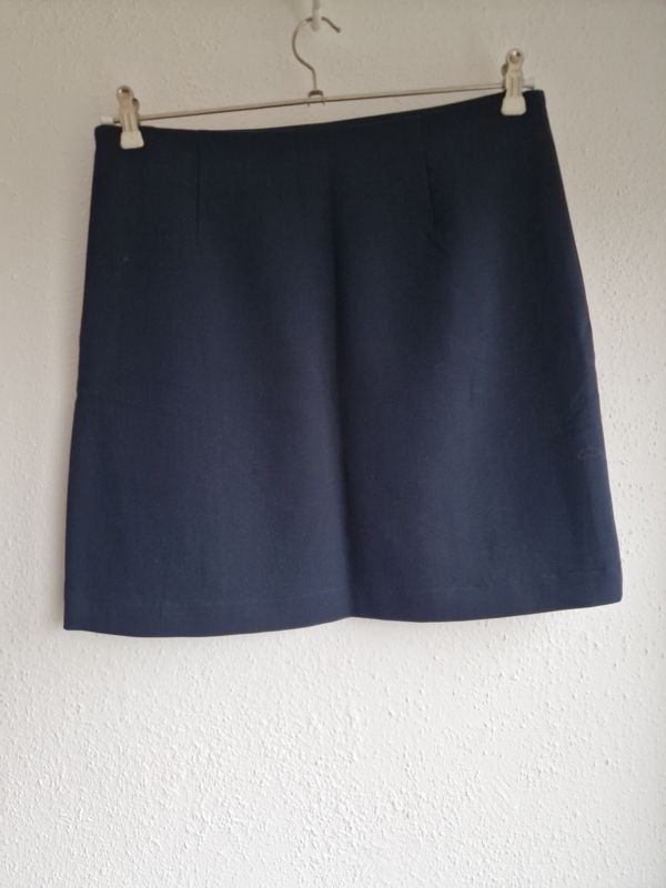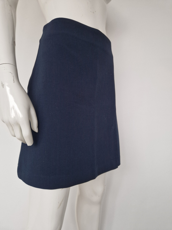 -Mooi nachtblauw rokje met klein splitje links voor van Modström in maat 38/40. Er staat maat L in het label. De rok valt iets kleiner.