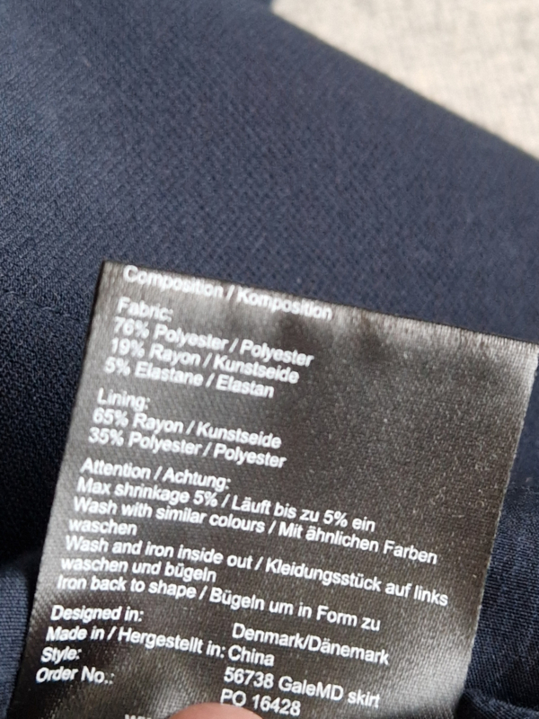 Materiaal: 78% polyester, 19% rayon, 5% elastaan. Voering: 65% rayon, 35% polyester