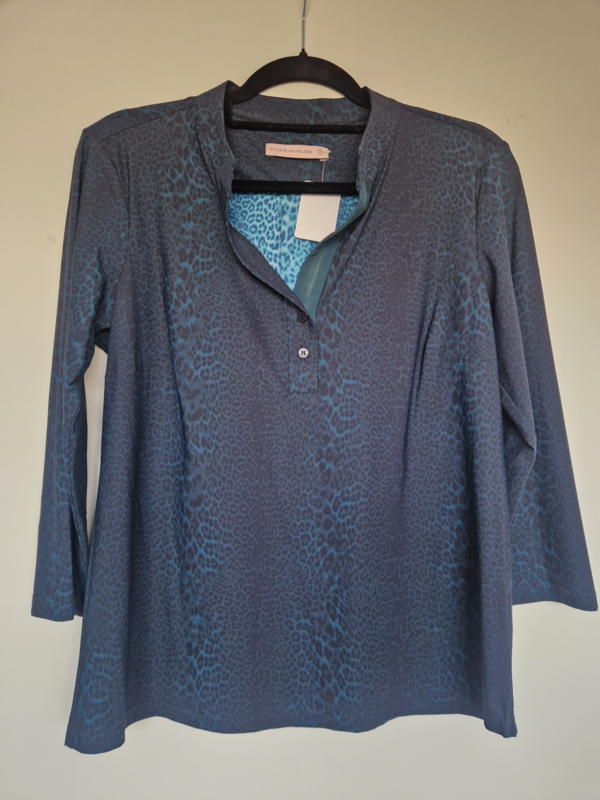 -Modieuze petrolkeurige top met luipaardprint van Studio Anneloes in maat M. De top valt als een maat 38/40.