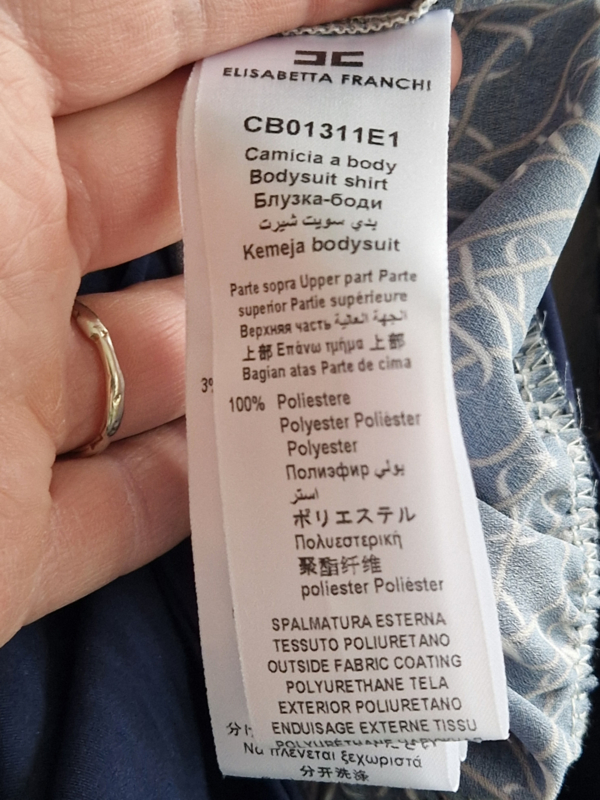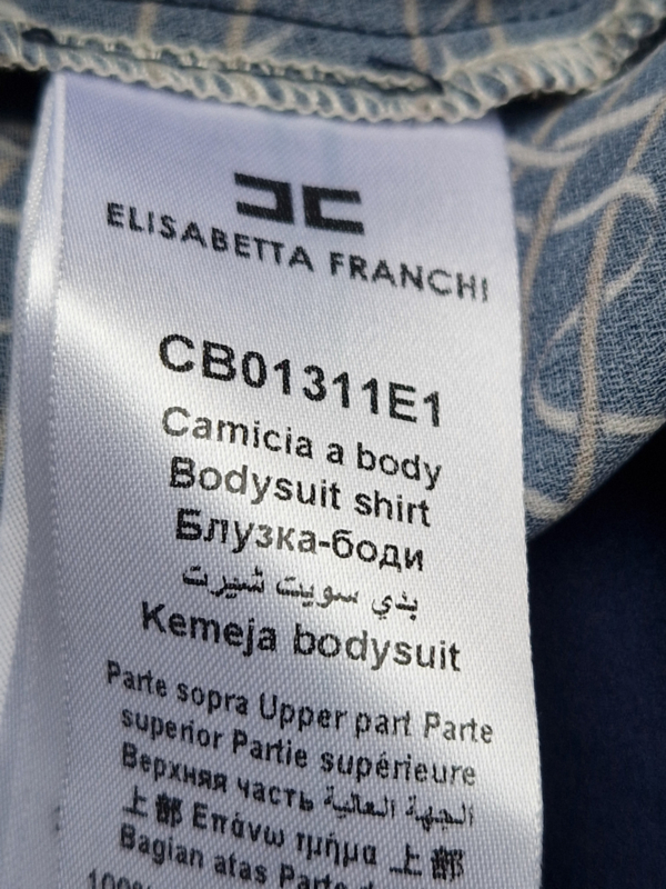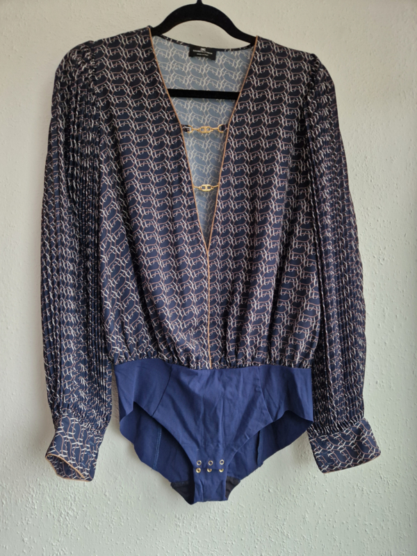 Elisabetta Franchi bodysuit. IT. maat 44, Blauw/chainprint.