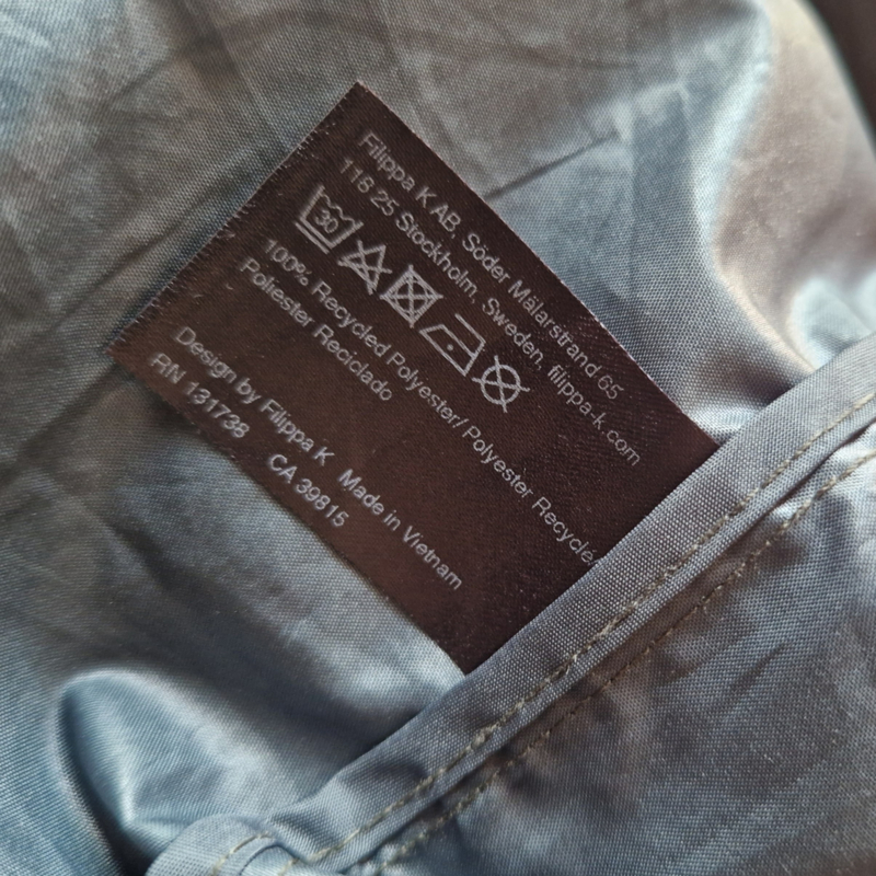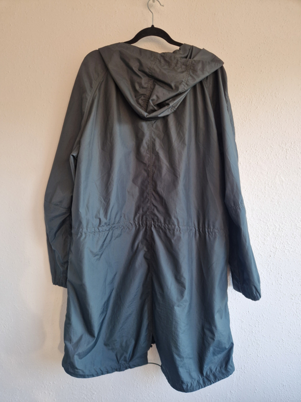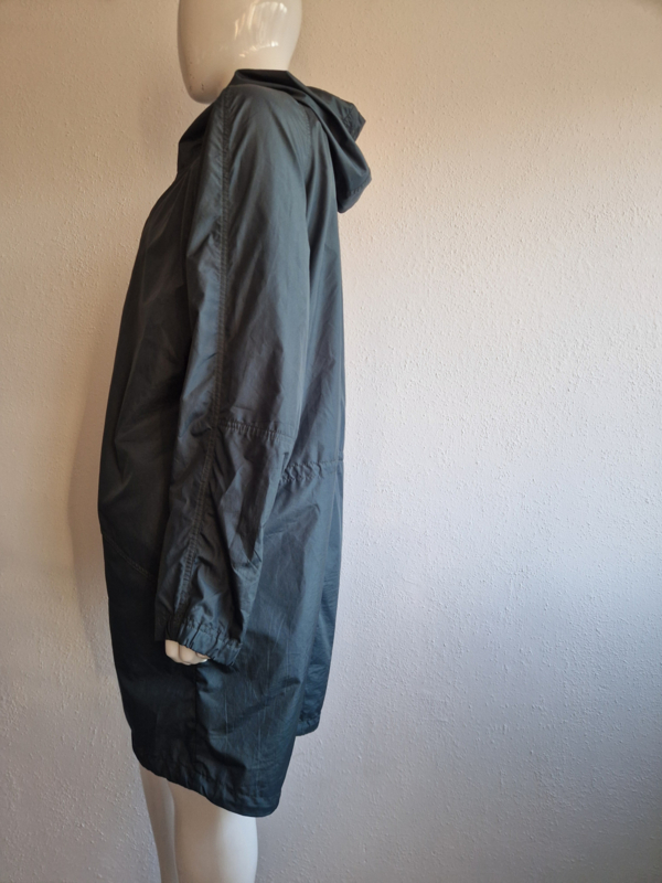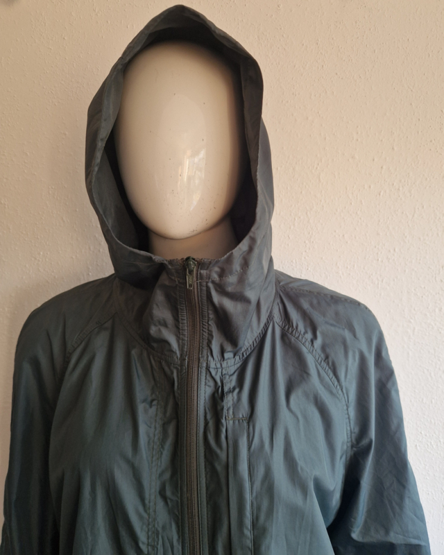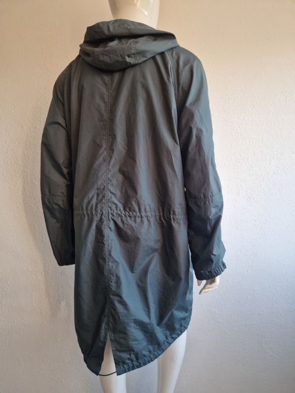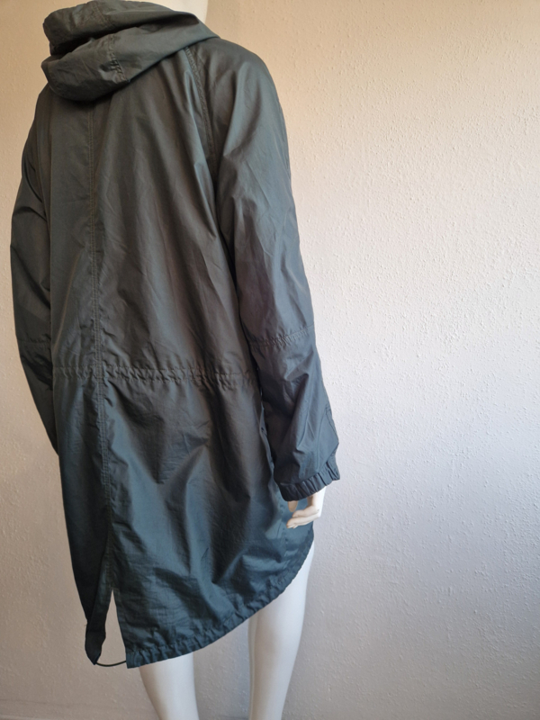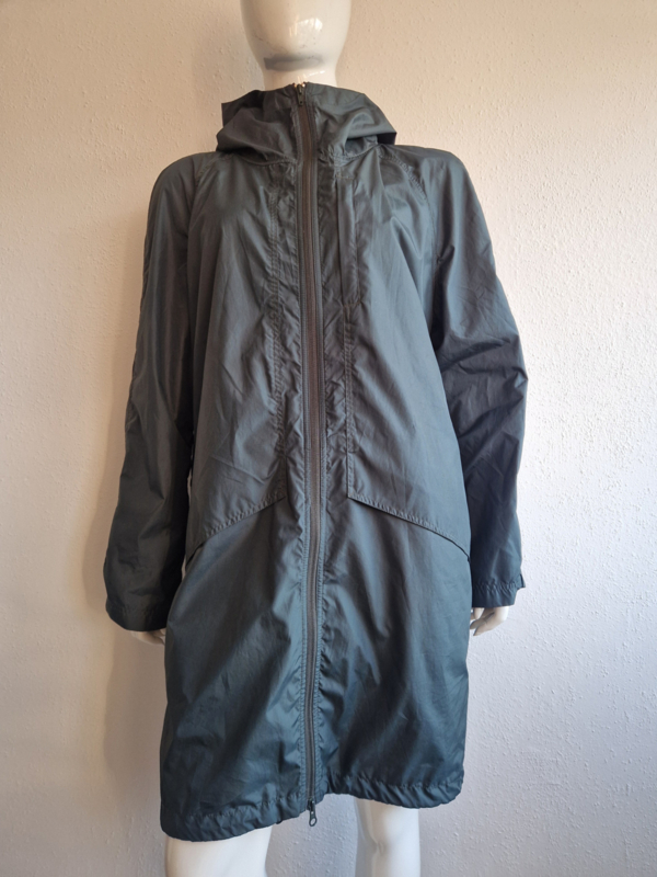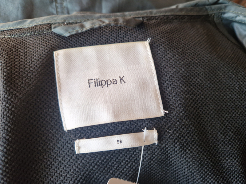 Mooie donkergroene regenjas van Filippa K. in maat 46. Er staat maat 56 in het label. De jas valt echter kleiner.