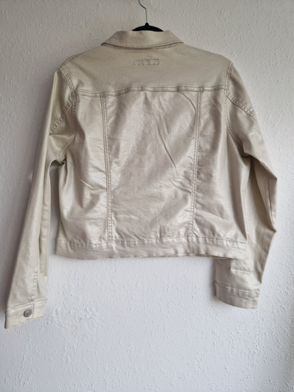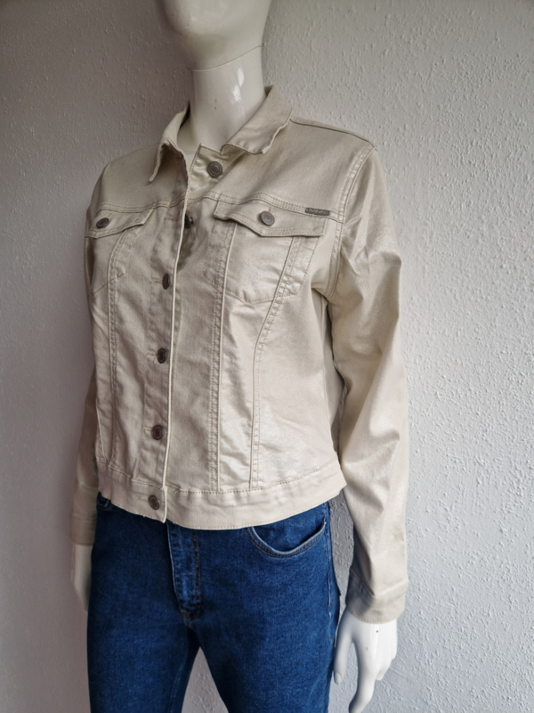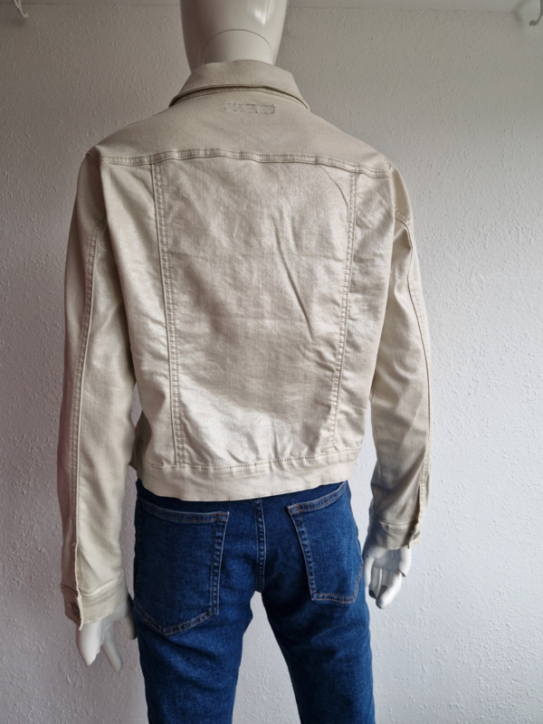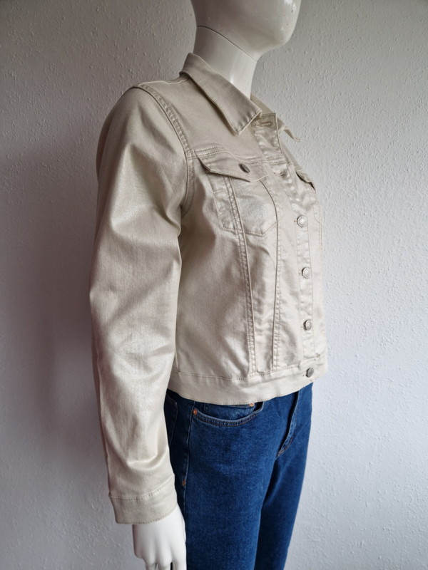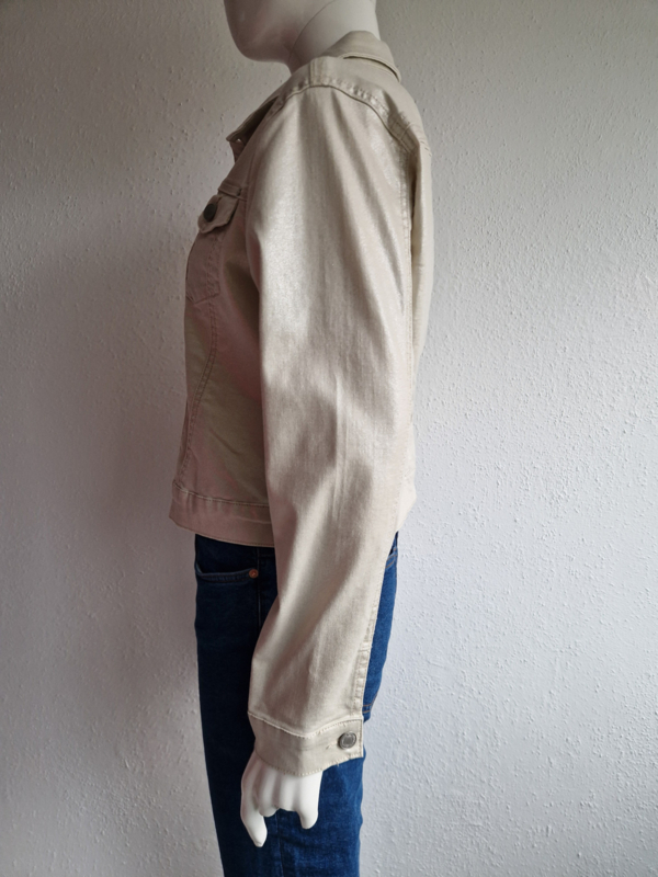 -Het jasje heeft een subtiele metallic/coated finish in een zachte champagnekleur.