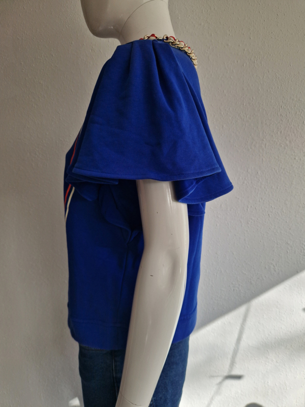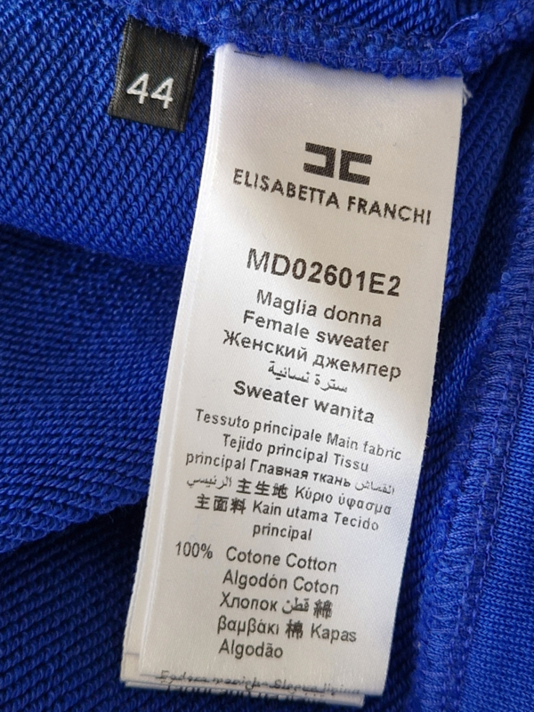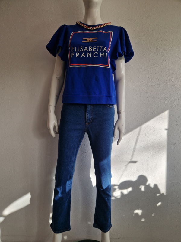 -Prachtige kobaltblauwe designer sweater van Elisabetta Franchi in de Italiaanse maat 44. De top valt als een maat 38.