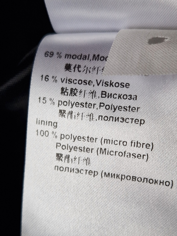 Materiaal: 69% modal, 16% viscose, 15% polyester. Voering: 100% polyester (microfibre)