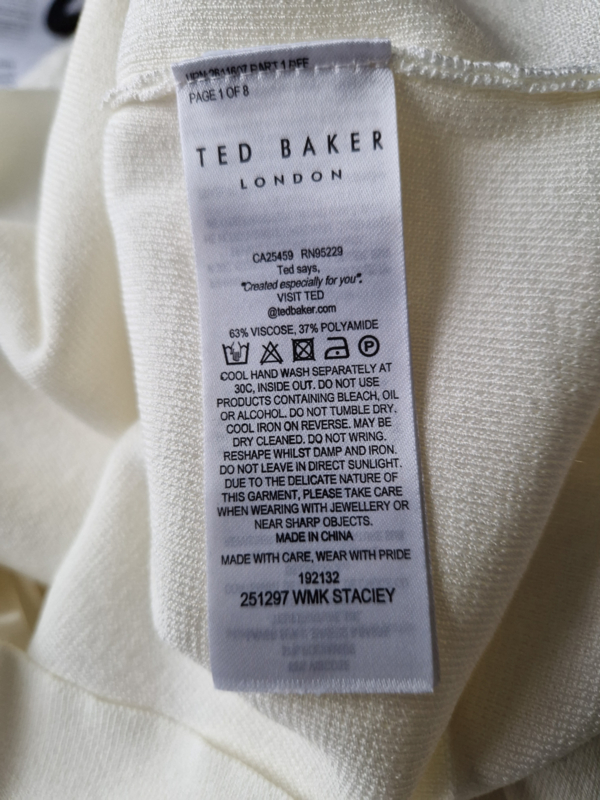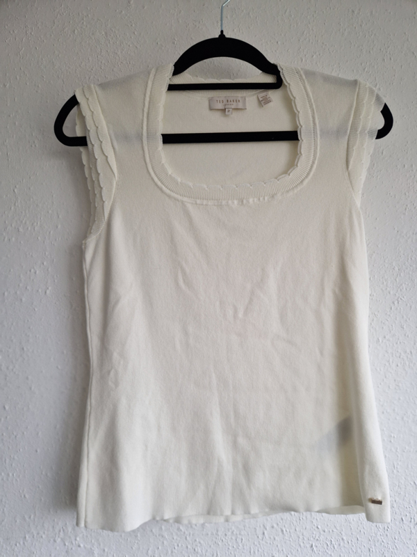 -Elegant en vrouwelijk mouwloos topje van Ted Baker London in een zachte roomwitte kleur in maat 2. De top valt als een maat 36/38.