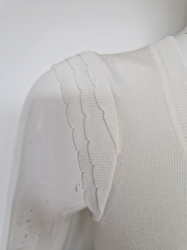 -Het item heeft een prachtige halslijn met verfijnde scallop details langs hals en schouders.
