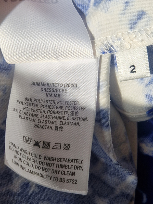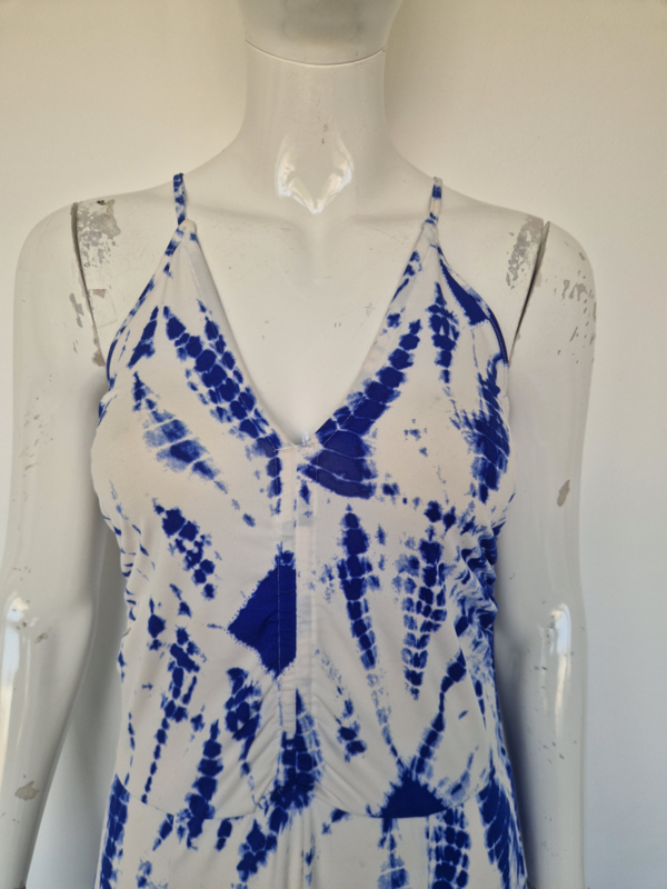 Prachtige lange zomerjurk van Essentiel Antwerp met opvallende blauw-witte tie dye print. De jurk valt als een maat 38.