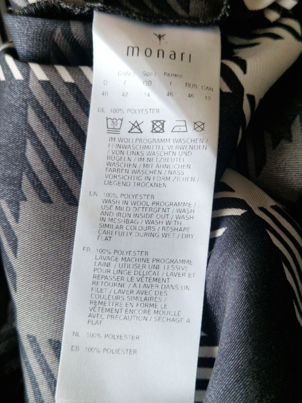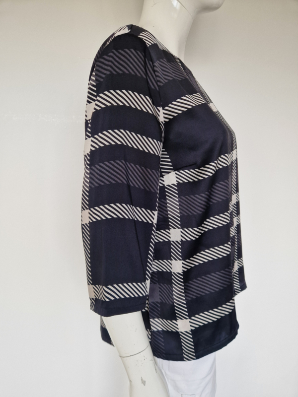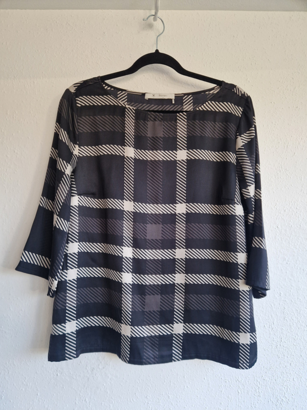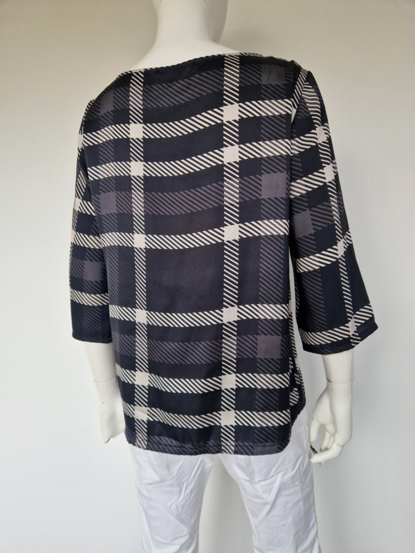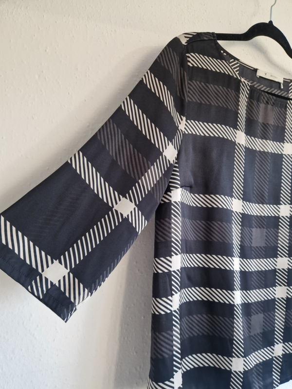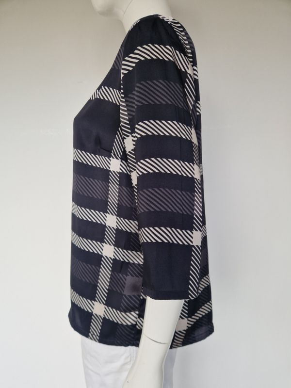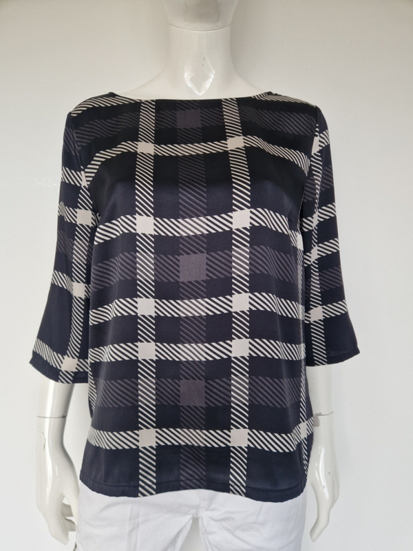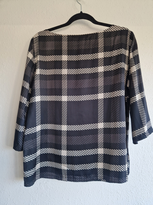 Monari top. Maat 40, Zwart/wit/ruitprint.