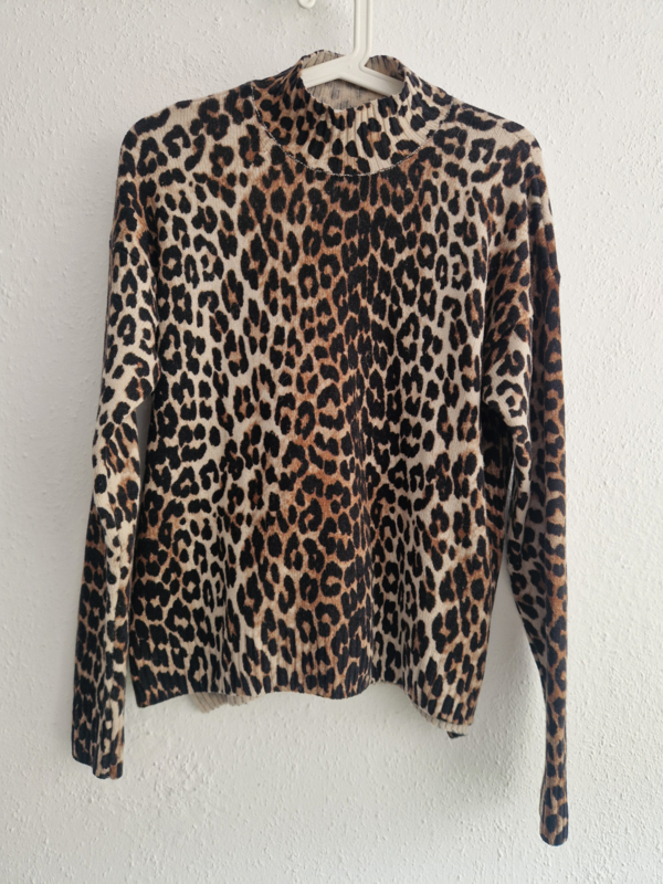 Prachtige trui met een stijlvolle leopard print van het Deense merk Ganni in maat S/M. De trui valt als een maat 36/38.