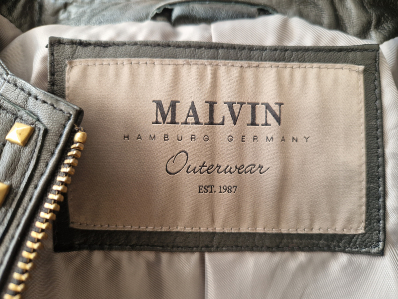 -Prachtig en stijlvol leren jasje van het Duitse merk Malvin. Er staat maat 40 in het label. Het jasje valt een maat kleiner. Een echte maat 38.
