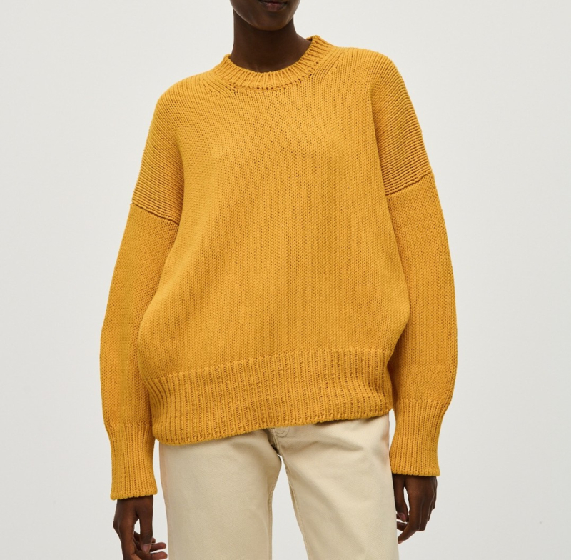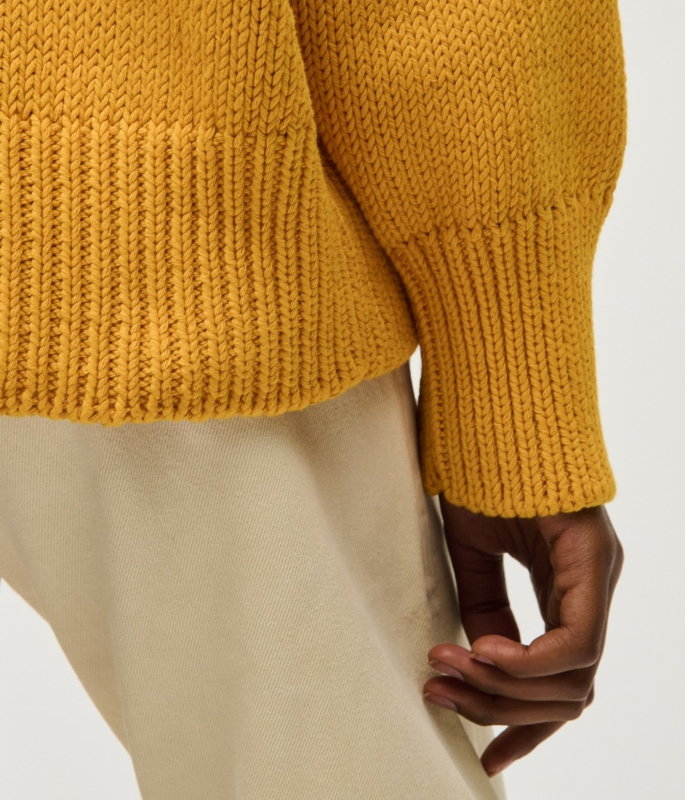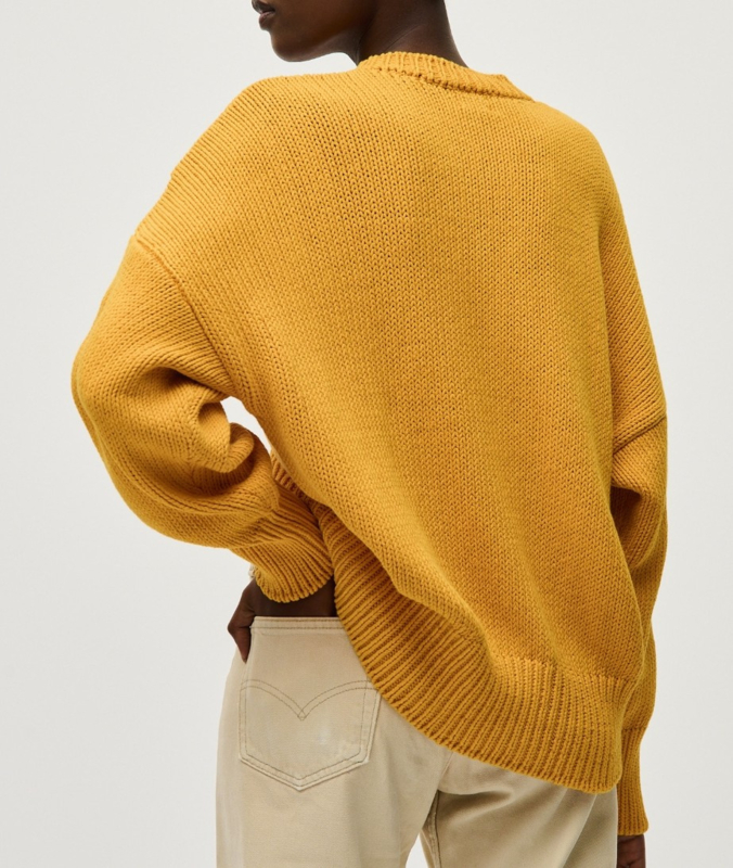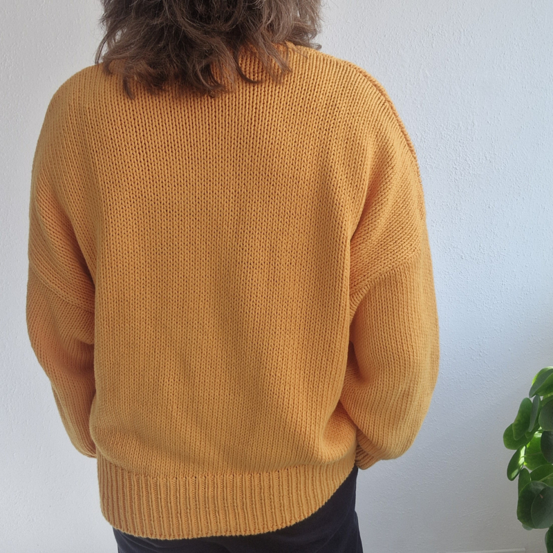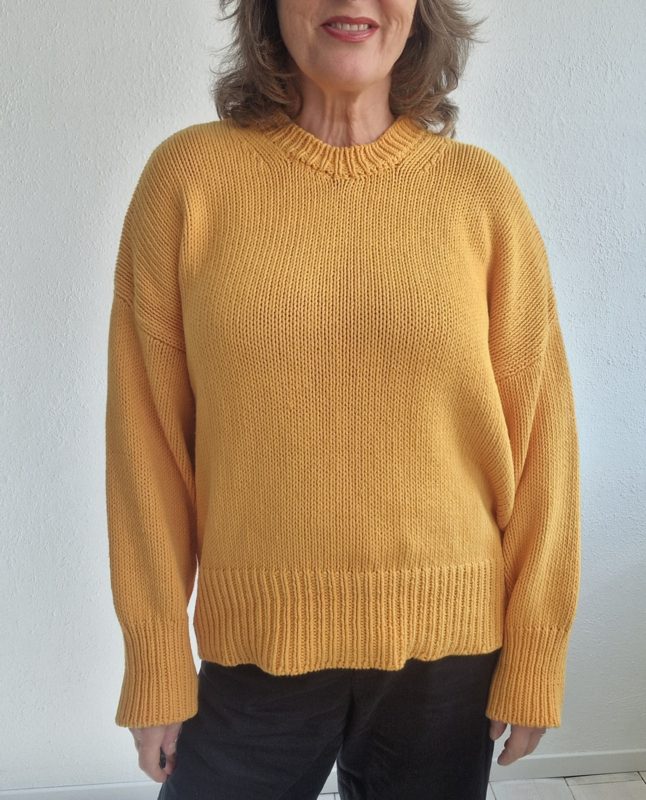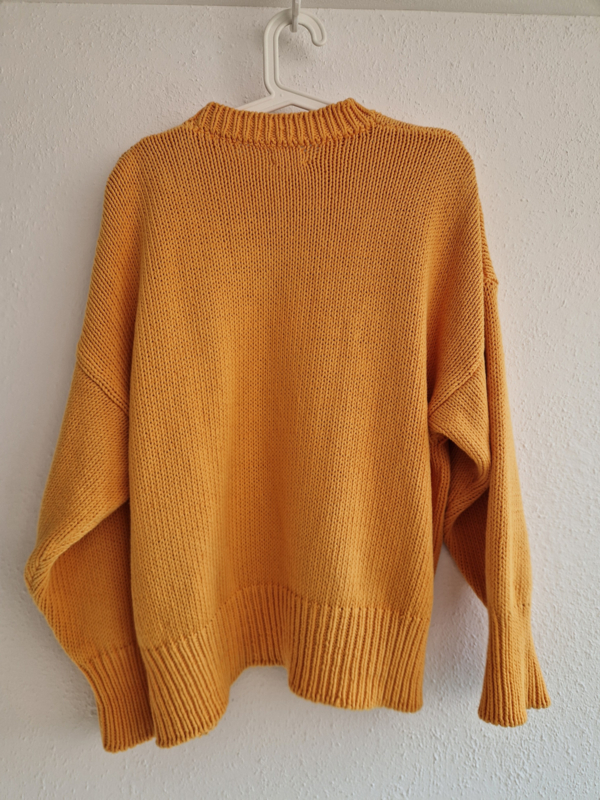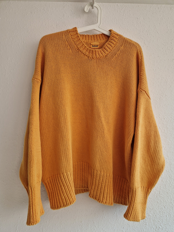 -Prachtige en zeer comfortabele okergele trui van het duurzame merk Babaà in maat OS. De trui valt oversized bij maat 36. Een aansluitend bij maat 38 en 40.