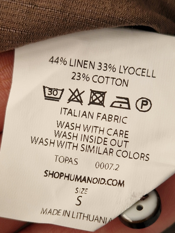 Materiaal: 44% linnen, 33% lyocell, 23% katoen