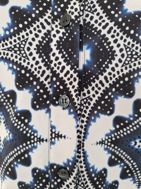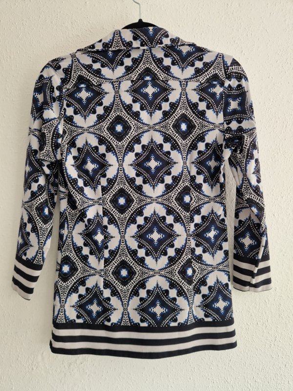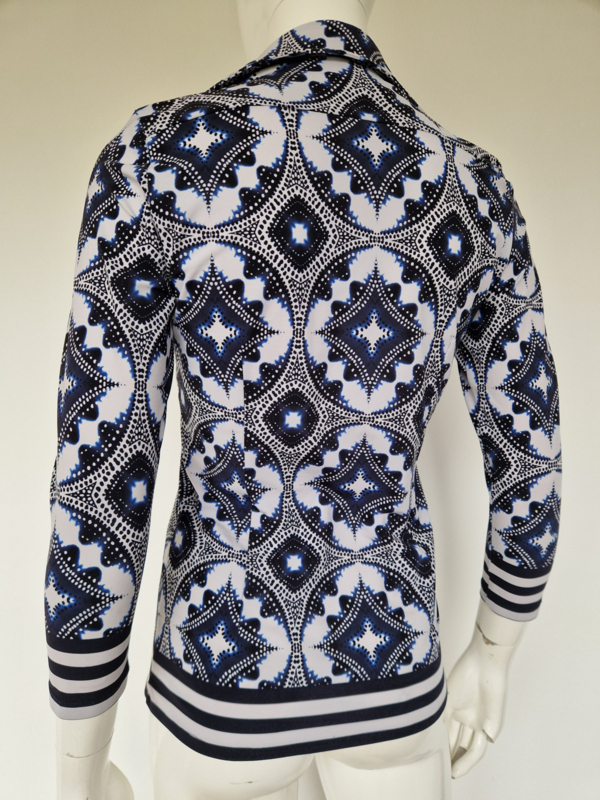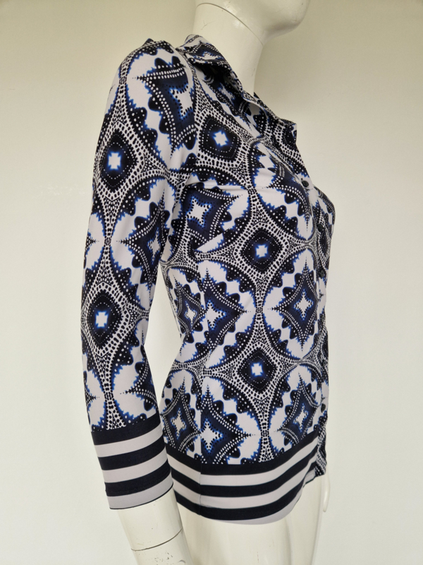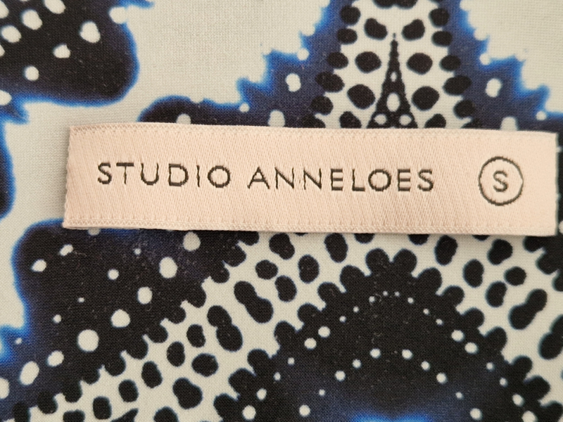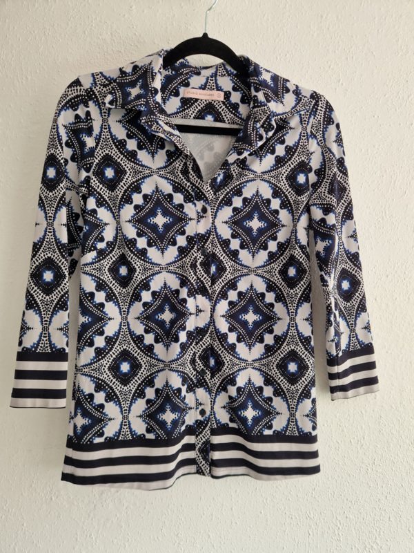 Mooie en comfortabele blouse van Studio Anneloes met een opvallende grafische print in blauwtinten in maat S. De blouse valt als een maat 36.