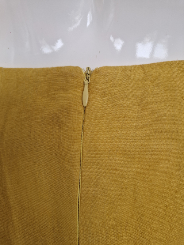 Pauw rok. Maat 3, Mosterdgeel/linnen.