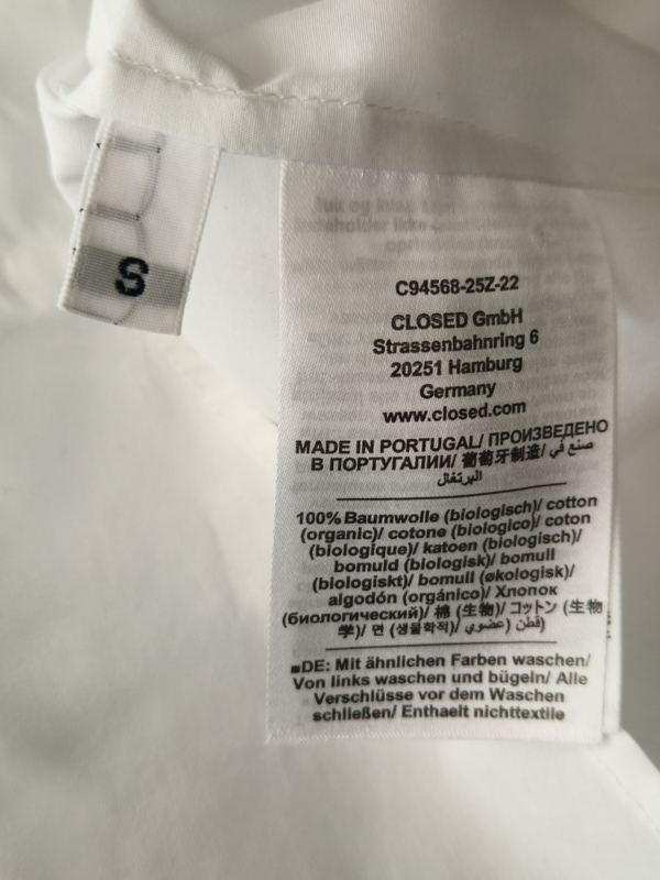 -Mooie Closed blouse van 100% biologisch katoen in tijdloos wit in maat S. De blouse valt als een maat 36.