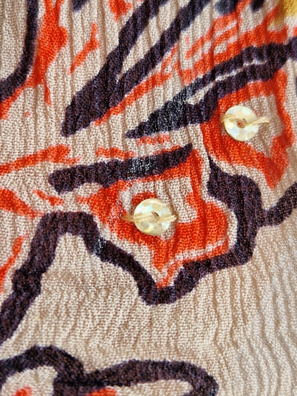 -De rijke print en mooie details zoals kant, borduursels. De wijde mouwen geven de jurk een luxe en unieke uitstraling.