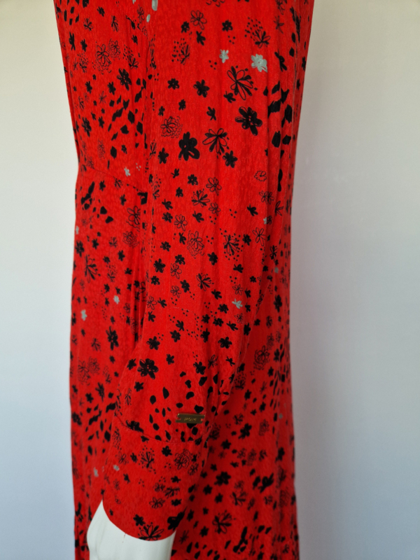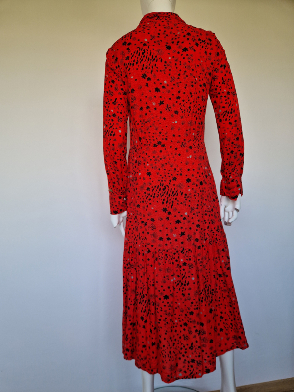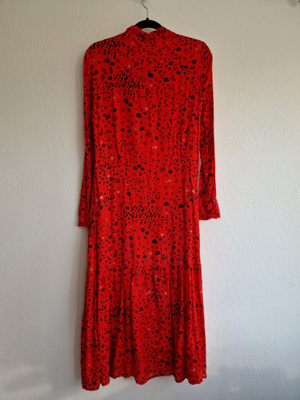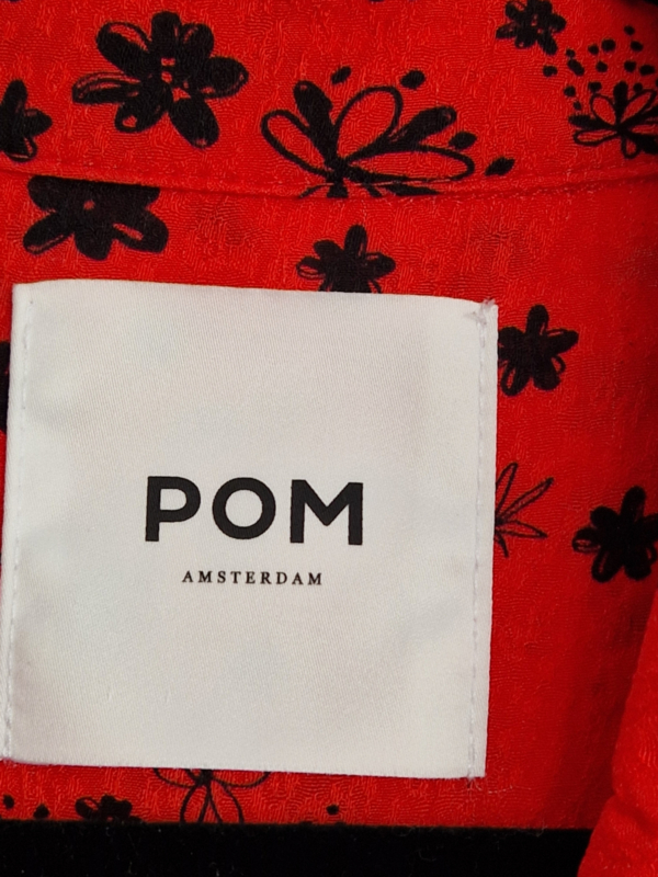 -Mooie, opvallende jurk van POM Amsterdam in een krachtige rode kleur met speelse zwarte bloemenprint. Er staat maat 40 in heet label. Deze jurk valt echt kleiner. Mooi te dragen met maat 36 en 38.