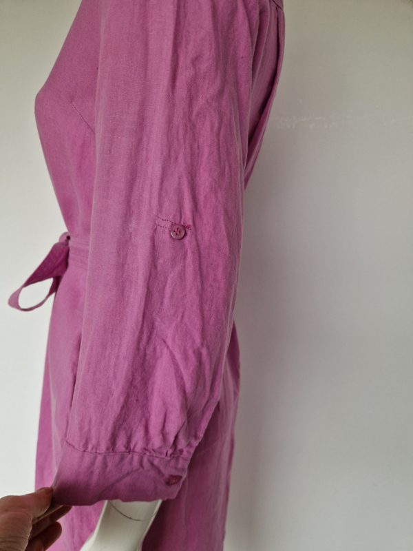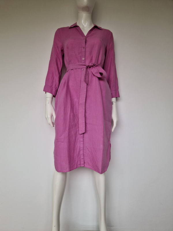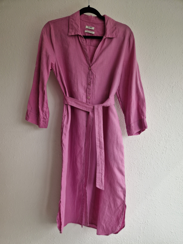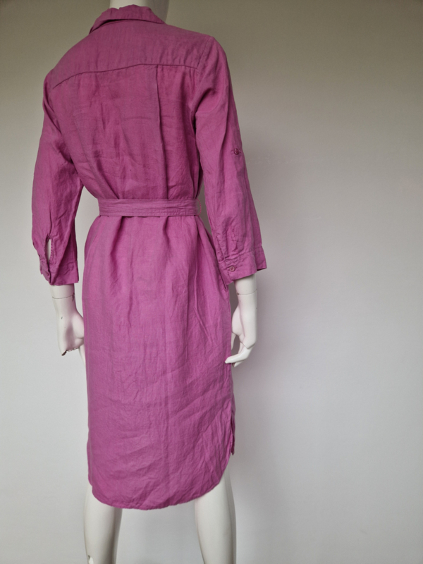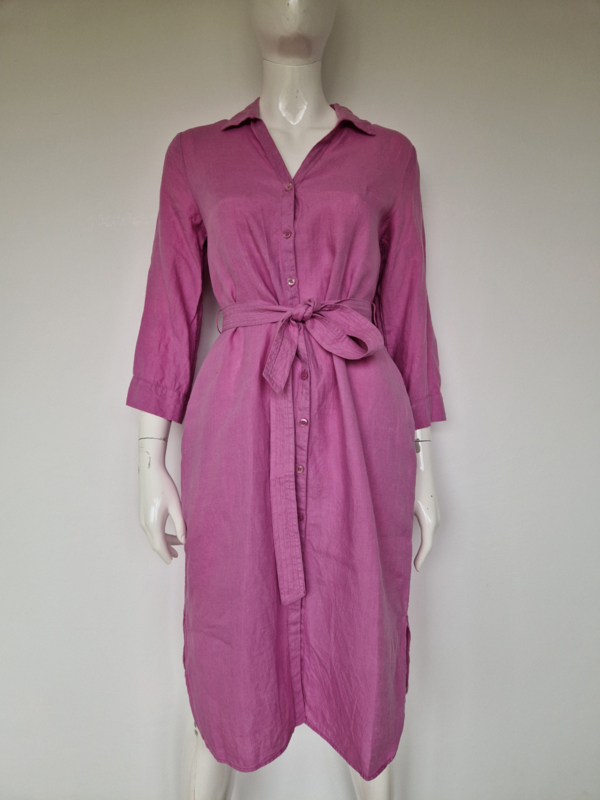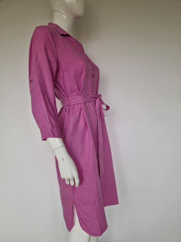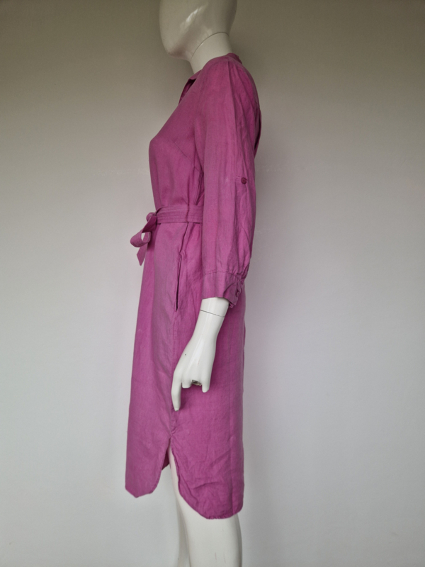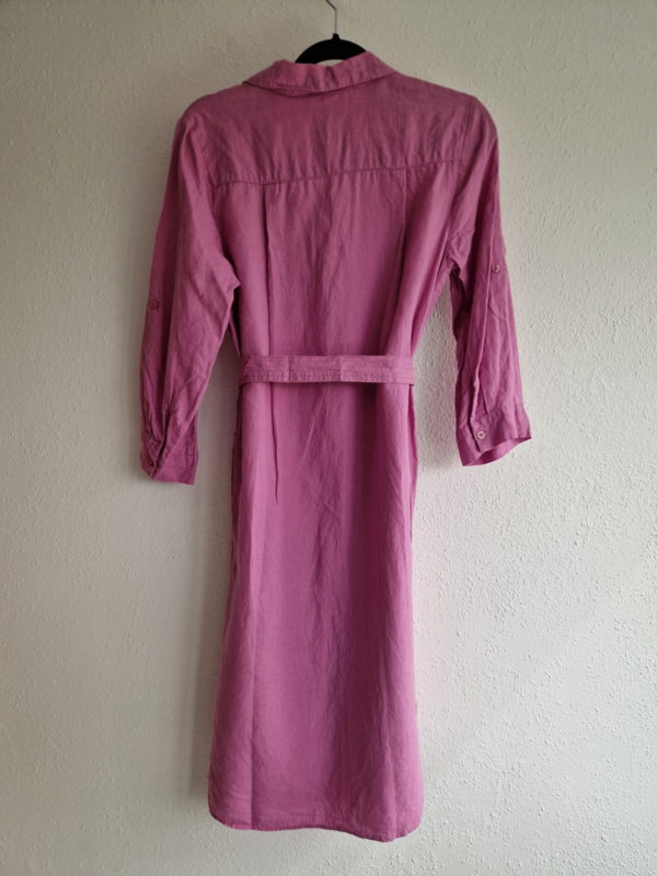 Kyra linnen doorknoopjurk. Maat 36, Roze.