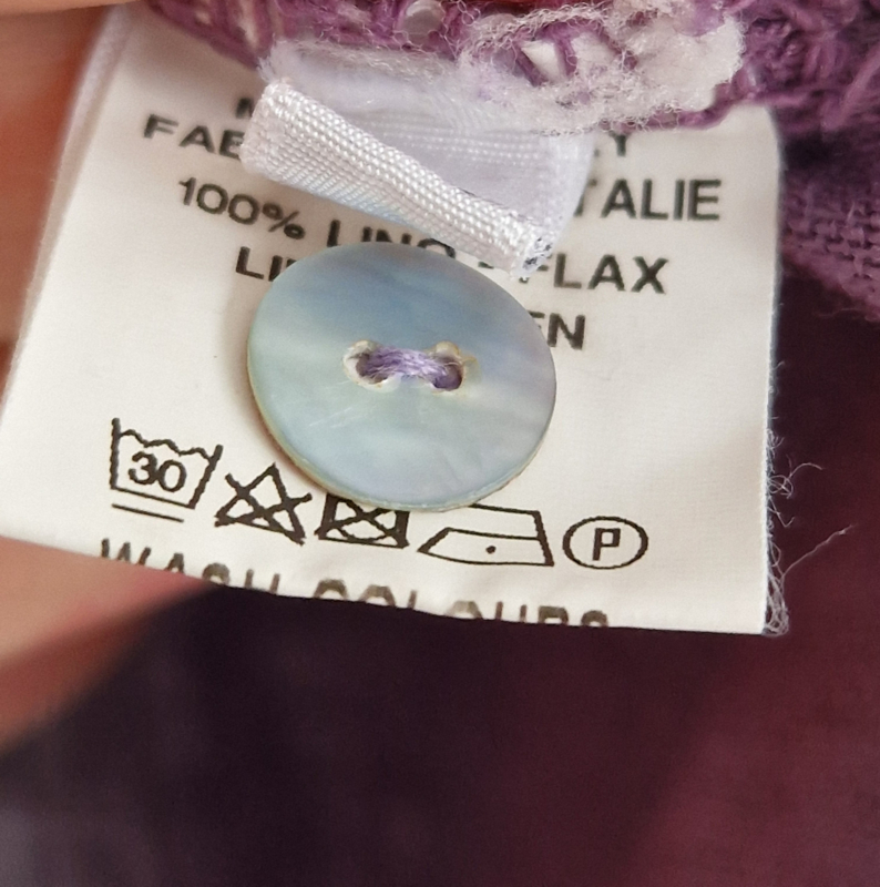 -Het onderste knoopje ontbreekt. Er zit echter nog een reserve knoopje bij het materiaal label.