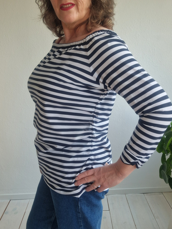 Studio Anneloes off shoulder top. Maat XXL. Navy/wit gestreept.