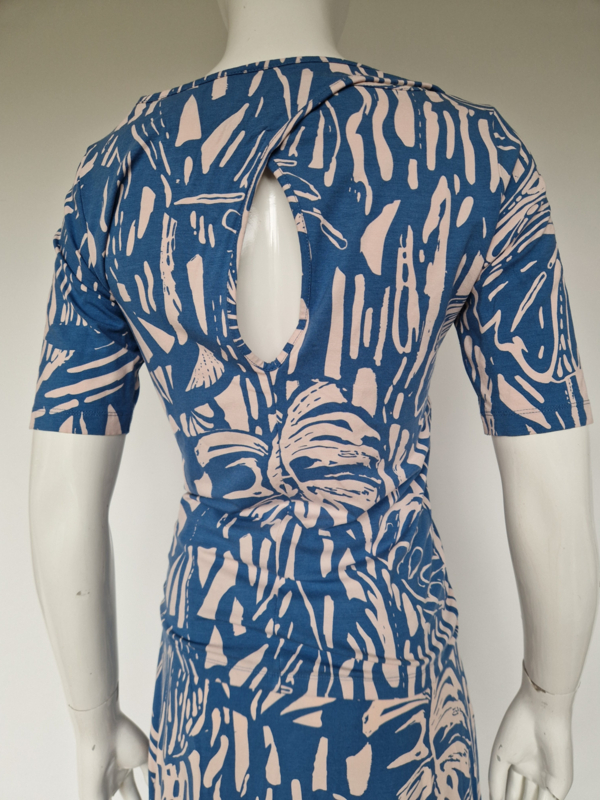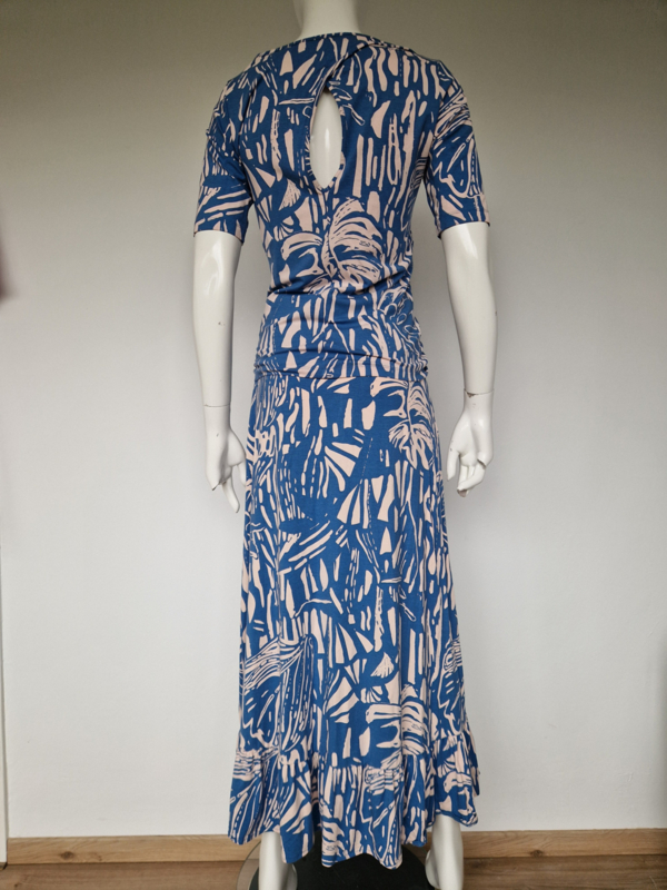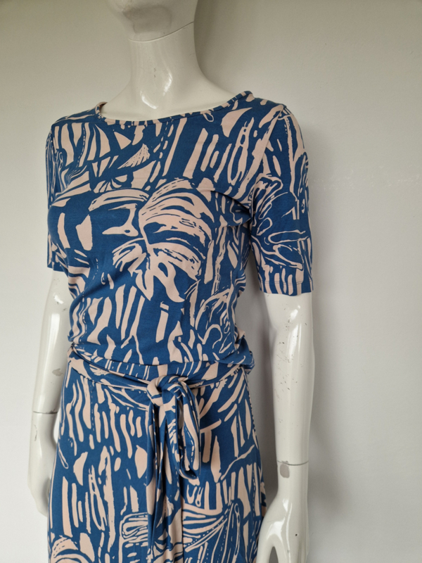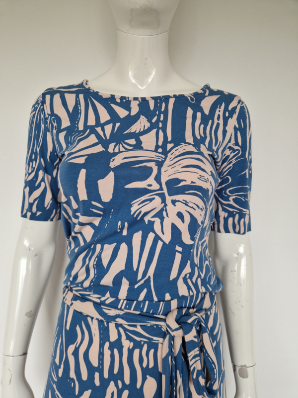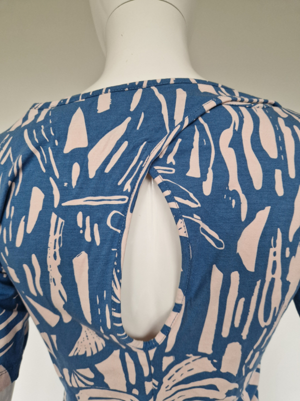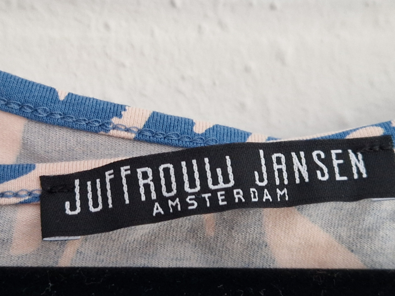 -Mooie, vrouwelijke top van het Nederlandse merk Juffrouw Jansen Amsterdam in een stijlvolle blauw/witte print. De top valt als een maat36/38.
