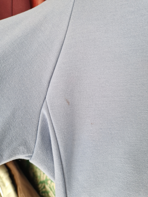 -Een paar lichte vlekjes op het rugpand. Valt bij het dragen eigenlijk niet op. Zie laatste foto.