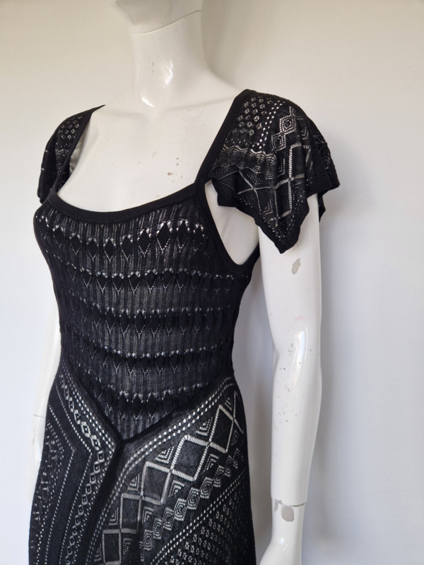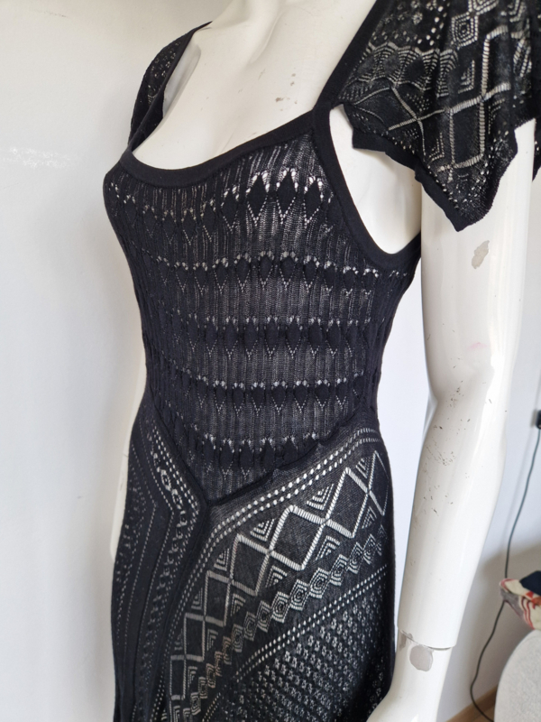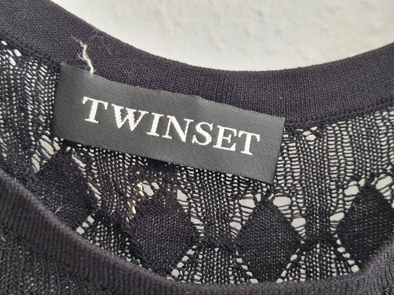 -Prachtige zwart kanten jurk van Twinset met een verfijnde, vrouwelijke uitstraling in maat 36.