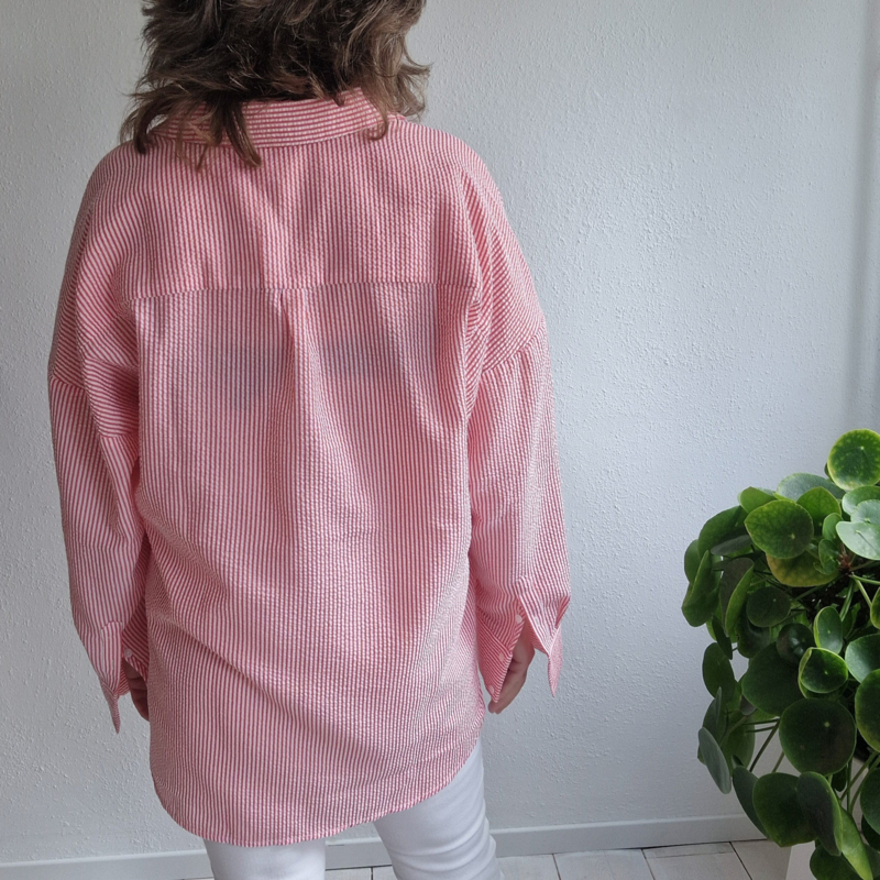-Deze blouse heeft een mooie oversized pasvorm met een klassieke kraag en knoopsluiting.