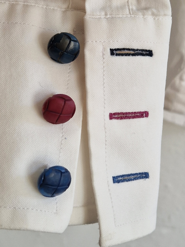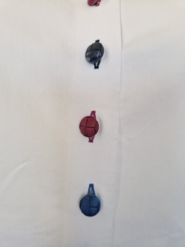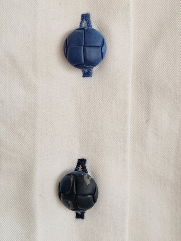 -Een paar knoopjes hebben wat kleine slijtage plekjes. Dit valt met dragen eigenlijk niet op.
