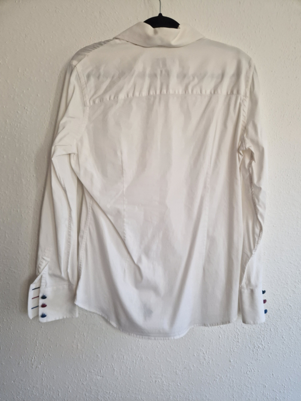 -Stijlvolle witte blouse van Cavallaro Napoli in een mooie getailleerde pasvorm. De blouse valt als een maat 38.
