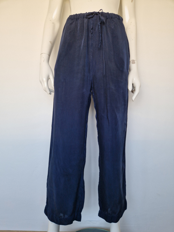 De broek heeft een elastische tailleband en een rechte, soepel vallende pijp. Door de viscose met elastaan draagt de broek heerlijk comfortabel en beweegt hij mooi mee.